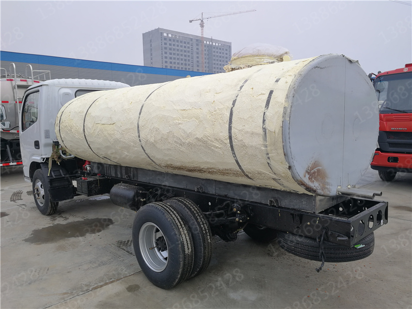 溫泉熱水車哪里買_福田熱水供應車_澡堂溫泉熱水車價格,保溫熱水運輸車相比一般的灑水車在結構上多了一個保溫層,保溫層在制作上主要是在罐體外部先焊接一個支撐骨架,其厚度一般為100mm,然后再用保溫材料把骨架填充滿。在保溫材料的選擇上我們一般考慮導熱系數小,耐高溫,質量輕,吸聲性能好,絕緣性和化學穩定性好的硬質聚氨酷泡沫塑料或巖棉。然后需要對填充的保溫材料進行修正,***后在骨架上撞上蒙板,蒙板一般使用厚度為lmm的鋁板。