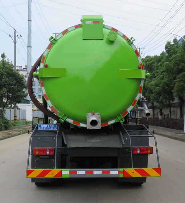 該車用于吸除水坑、下水道里污濁物;主要裝置有罐體及吸污裝置;隨底盤選裝駕駛室;罐體總容量:15.62立方米;罐體有效容積:14.88立方米;罐體外形尺寸(總長×直徑)(mm):6150×2000;側、后防護材料均為:Q235碳鋼,連接方式均為:螺栓連接,后部防護截面尺寸(mm):150×50,后部防護離地高度(mm):490;卸料方式為舉升后卸式;ABS型號/生產廠家:3631010-C2000/東科克諾爾商用車制動系統(十堰)有限公司.卸料方式為舉升后卸式;僅采用底盤4350+1350(mm)軸距改裝.選裝出口樣式,選裝油箱及電瓶位置。