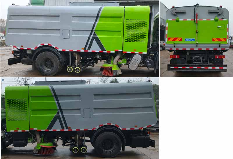 該車主要作用于路面的吸塵作業;專用裝置為吸塵裝置、垃圾箱;ABS型號/生產廠家:3631010-C2000/東科克諾爾商用車制動系統(十堰)有限公司,ABS 8/東科克諾爾商用車制動系統(十堰)有限公司, 4460046450/威伯科汽車控制系統(中國)有限公司,J ABS/焦作博瑞克控制技術有限公司;側防護由專用裝置代替,后防護材料為:Q235碳鋼,連接方式為:螺栓連接,后部防護截面尺寸(mm):230×60,后部防護離地高度(mm):450;隨底盤選裝駕駛室;采用5300,5000,4700mm,4500mm軸距.選裝限速裝置,限速89.選裝前部裝置時前伸910mm,車輛長度為9600mm,9300mm,9100mm。選裝中置吸盤及掃刷裝置。選裝側面和后部箱體壓邊樣式及排氣孔樣式。