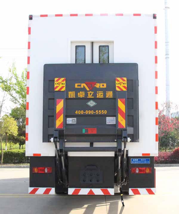 縱昂牌CLT5180XCSEQ6型廁所車,盈通汽車城市環衛廁所車,城市廁所革命車,該車主要裝置為箱體、水箱、便池、洗手臺等設施,用于流動廁所服務;側、后防護材料均為:Q235碳鋼,連接方式均為:焊接連接,后部防護截面尺寸(mm):130×60,后部防護離地高度(mm):400.ABS的型號及生產廠家:3631010-C2000/東科克諾爾商用車制動系統(十堰)有限公司,J ABS/焦作博瑞克控制技術有限公司;隨底盤選裝駕駛室,僅采用底盤軸距(mm):5600改裝.液壓尾板收起狀態的水平長度為300mm;尾板質量為450kg. |