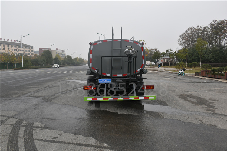 我公司產品標配后對沖、后灑、側噴、后置式工作平臺,平臺上配置綠化水炮 (可360°旋轉,既可以調成柱狀,也可以調成霧狀,更可以調成直沖狀、大雨、中雨、小雨、毛毛雨),配備優質大功率專用灑水泵 (可自吸自排,可從河里或池塘抽水到罐體),取力器,雜物過濾網,消防接口,自流球閥系統、取力器、球閥、濾網均為國家標準產品,主管道加粗,法蘭墊、法蘭盤加厚,大通徑球閥。整體具備性能優良安全可靠、效率高、流量大、維修方便等特點。