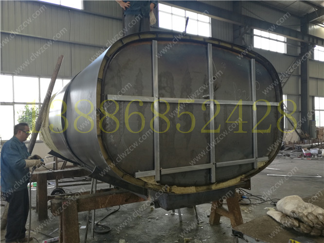 保溫運熱水車的裝水容器為帶有保溫層的方形或橢圓形罐體,罐體總成結(jié)構(gòu)類似于一般灑水車的罐體,罐體和封頭采用優(yōu)質(zhì)碳鋼板或不銹鋼板,罐體內(nèi)部設(shè)置防浪 板,減少內(nèi) 部熱水在運動中對罐體的沖擊。罐體上部人口蓋是方便直接接水或人員進(jìn)出維修,清掃的裝置,人口蓋上部留有通氣孔,裝卸熱水時起到 罐體內(nèi)外氣體交流的作用。保溫層總成是保溫運水車的重要部件之一,其保溫原理是利用保溫材料的保溫特性使得罐體內(nèi)的熱水溫度不向外傳導(dǎo),外部空氣無法接入。
