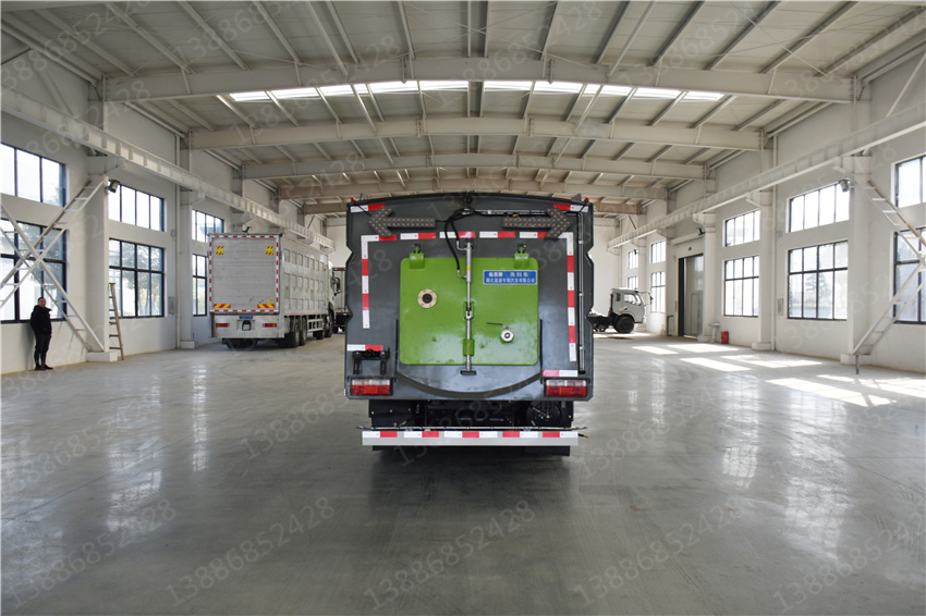 東風福瑞卡洗掃車_國六5.5方洗掃車_物業小區洗掃車_小型柴油清掃車該車主要作用于路面的清掃作業;專用裝置為清掃裝置、垃圾箱。ABS型號/廠家:ABS/ASR-12V-4S/4M/襄陽東風隆誠機械有限責任公司;側防護裝置為專用裝置代替,后防護材料均為:Q235碳鋼,連接方式為:螺栓連接,后部防護截面尺寸(mm):120×50,后部防護離地高度(mm):370.隨底盤選裝駕駛室。選裝燃油箱,電瓶,尿素罐,儲氣筒左右安裝位置。