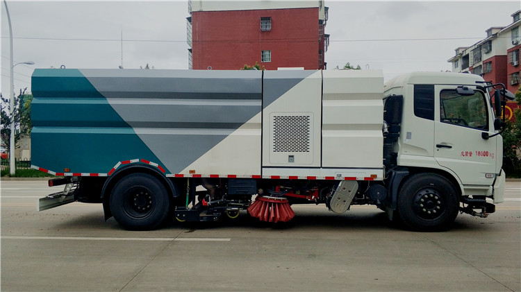● 左右側噴桿V形布置和吸嘴內置主噴桿無間隙高壓噴嘴噴水布置,有效的將清洗后的污水和垃圾全部歸攏趕至吸嘴處,并吸收于污水垃圾箱內,使路面不留塵土、積水,路面清洗、刷掃和污水回收效果佳。