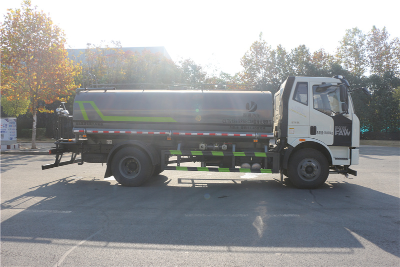 解放J6灑水車_解放15方灑水車_J6L大柴225灑水車_湖北盈通專用汽車有限公司,該車主要用于城鄉(xiāng)園林綠化噴灑,噴藥;主要裝置為水罐及噴灑裝置;罐體有效容積:11.45立方米,罐體外形尺寸(長×長軸×短軸)(mm):5200×2300×1410;ABS系統(tǒng)生產(chǎn)廠家:長春瑞立科密汽車電子有限公司,型號:CM4XL;側(cè)、后防護(hù)材料均為:Q235碳鋼,連接方式均為:螺栓連接,后部防護(hù)截面尺寸(mm):120×50,后部防護(hù)離地高度(mm):480。隨底盤選裝駕駛室。選裝噴霧裝置樣式。 |