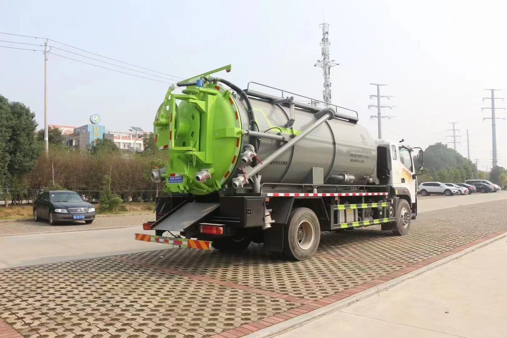 福田奧鈴17方清洗吸污車,奧鈴大黃蜂疏通吸污車,管道疏通車,市政下水道清理車,高壓清洗吸污車,該車主要用于下水道系統的清理和疏通工作;主要裝置為罐體及清洗吸污裝置總成;罐體尺寸為(總長×直徑)(mm):5650×2000(前部含封頭長2550mm為清水罐,后部含封頭長3100mm為污水罐);污水罐總容量:7.9立方米;有效容積:7.52立方米;介質:液態污物,清水罐總容量:6.32立方米,有效容積:6.02立方米,介質:;兩罐獨立,且不能同時滿載,清洗功能時用清水罐,吸污功能時用污水罐,兩罐不能同時使用.側、后防護材料均為:Q235碳鋼,連接方式均為:螺栓連接,后部防護截面尺寸(mm):120×60,后部防護離地高度(mm):470;卸料方式為舉升后卸式,ABS系統型號:ABS-VI.E;生產企業:廣州瑞立科密汽車電子股份有限公司.ABS系統型號:ABS-E;生產企業:威伯科汽車控制系統(中國)有限公司,ABS系統型號:3550D-1010;生產企業:東科克諾爾商用車制動系統(十堰)有限公司.采用4800mm軸距.選裝左側樣式;隨底盤選裝限速裝置,限速90km/h.選裝尿素罐位置,選裝電瓶位置。選裝罐體頂部無護欄裝置,選裝側面無罐體加強筋樣式,選裝后部吸污口樣式。